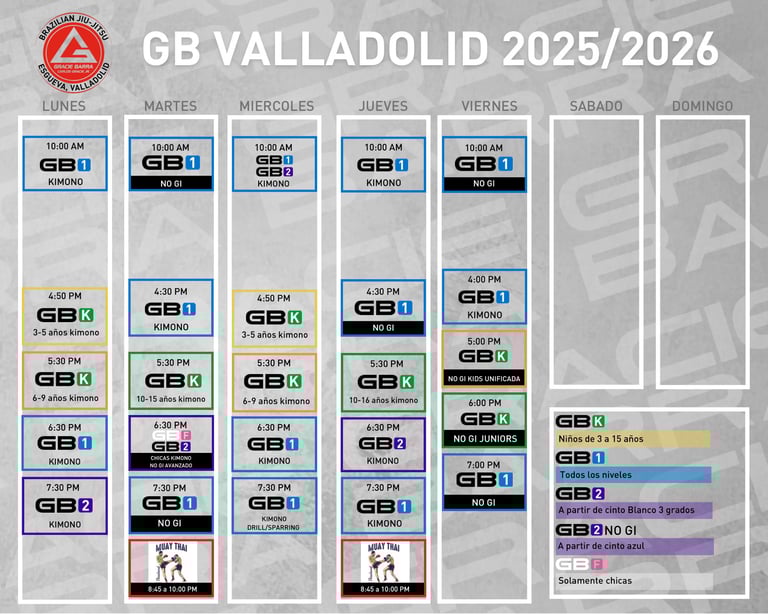 Somos un gimnasio de Brazilian Jiu-Jitsu que seguimos la filosofía de la familia Gracie Barra, una de las organizaciones más reconocidas a nivel mundial en artes marciales. Contamos con dos sedes en Castilla y León, Valladolid y Palencia, donde formamos a alumnos de todos los niveles en un entorno cercano, disciplinado y orientado a la mejora continua. Nuestro objetivo es transmitir no solo la técnica del Jiu-Jitsu, sino también sus valores: respeto, constancia y crecimiento personal.